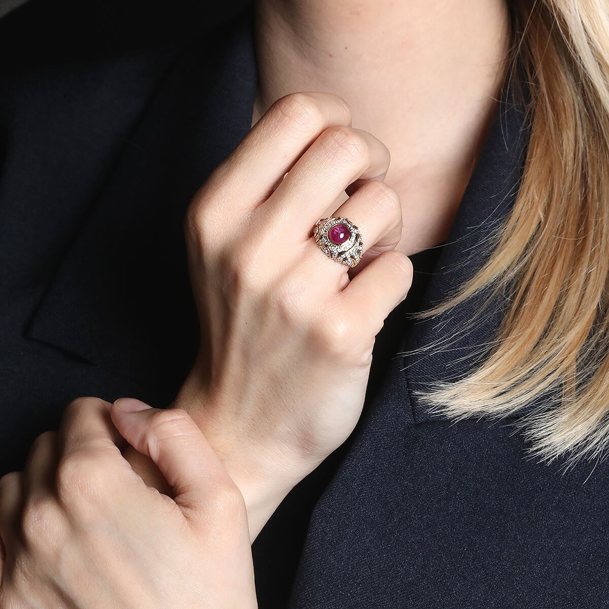 Diamonds, ruby and 18k gold ring. Circa 1890.