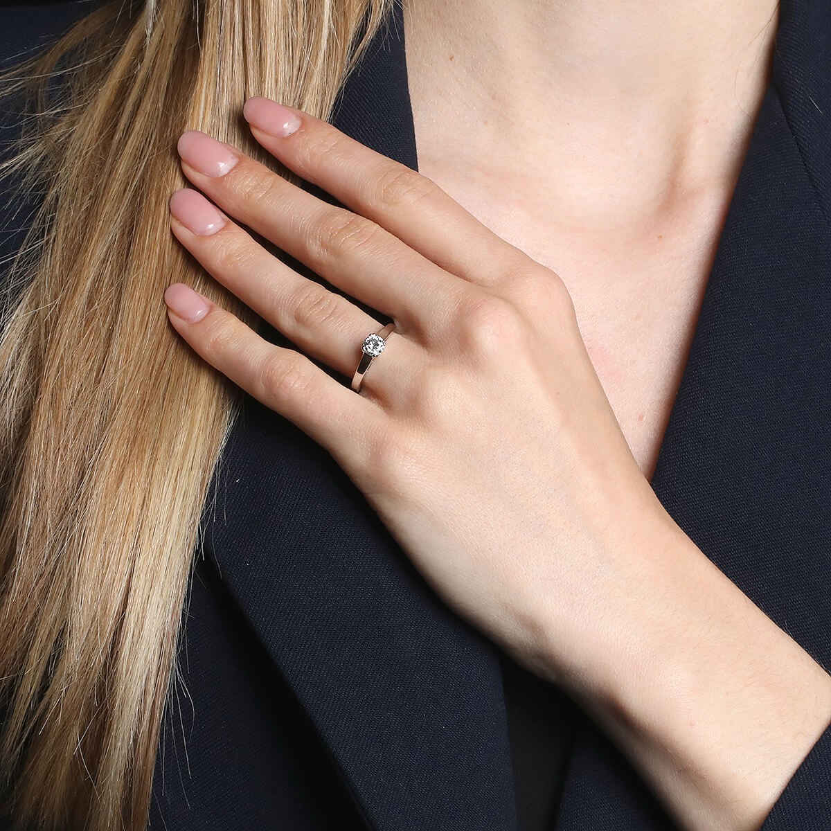 Bague solitaire en or blanc, ornée d’un diamant de 0,50 ct env. en serti griffe.