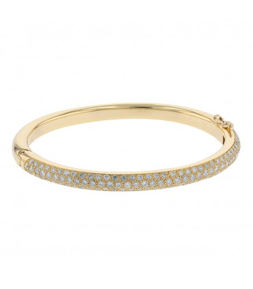 Bracelet jonc ouvrant en or jaune, rehaussé d’un pavage de diamants, agrémenté d’un fermoir invisible à cliquet avec sécurité.