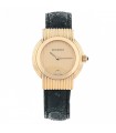 Montre bracelet de femme en acier, cadran nacré avec chiffres romains et index appliqués, lunette godronnée. Mouvement quartz. Bracelet interchangeable en acier, maillons grain de ris avec boucle déployante en acier. Signée et numérotée. Accompagnée de 4 bracelets supplémentaires couleur bleu, taupe et camel ainsi qu’un bracelet composé de 4 rangs de perles de culture de 4 mm.