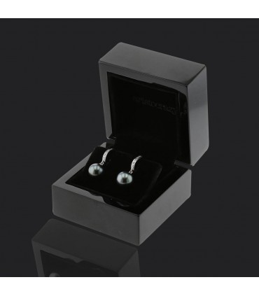 Boucles d’oreilles en or blanc, ornées de diamants retenant en pampille une perle de culture grise de Tahiti de 10 mm.