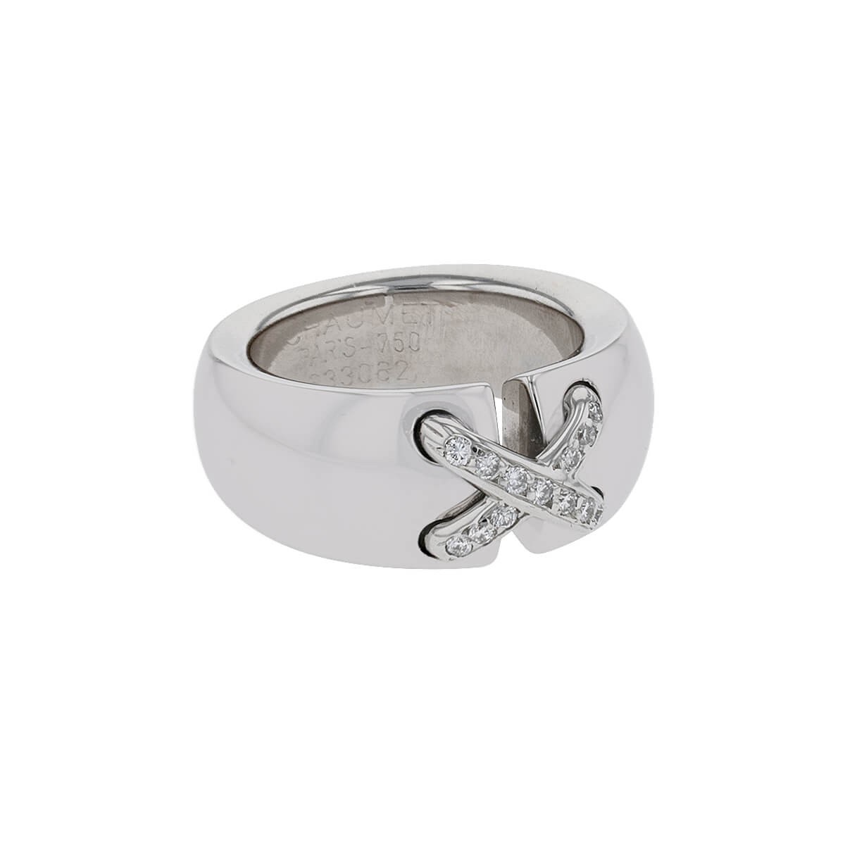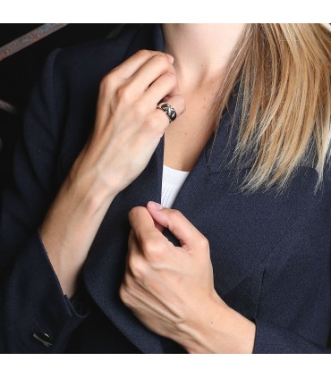 Bague en or blanc, ornée d'un motif stylisant 2 ''liens'' rehaussés de diamants. Signée et numérotée.