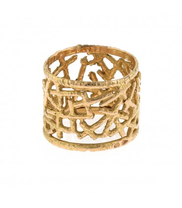 Bague en or jaune martelé, à décor de motifs ajourés en croix entrelacées.