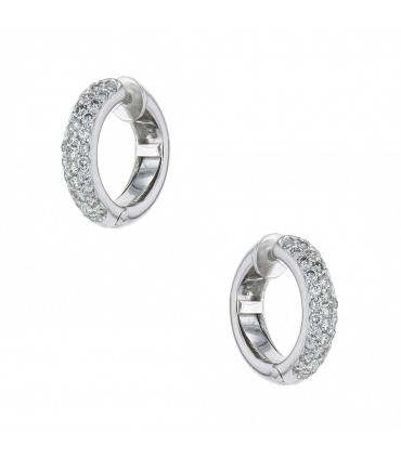 Boucles d’oreilles créoles en or blanc, ornées d’un pavage de diamants.