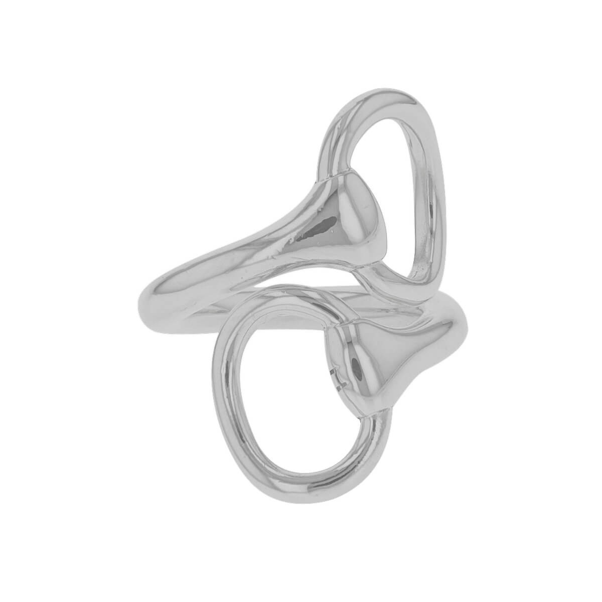 Bague en argent stylisant un mors de cheval en “toi et moi”. Signée.