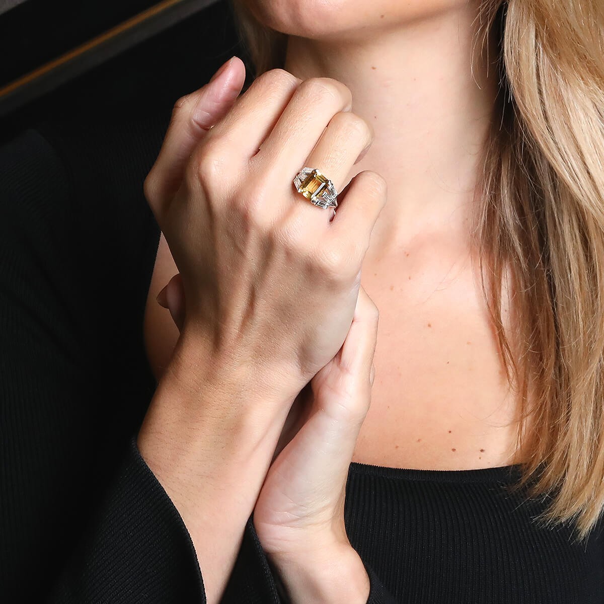 Diamonds, citrine, 18k gold and platinum ring