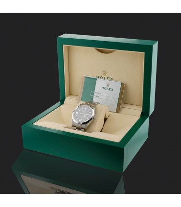 Montre bracelet d’homme en acier, cadran noir avec chiffres arabes et index appliqués luminescent. Mouvement automatique. Bracelet acier, maillons oyster avec boucle déployante réglable en acier. Signée et numérotée réf. 214270.