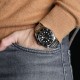 Montre bracelet d’homme en acier, cadran noir avec index luminescents, chemin de fer pour les minutes, lunette tournante émaillée graduée noir. Mouvement automatique. Bracelet acier, maillons articulés avec boucle déployante réglable en acier. Signée et numérotée réf 79230N.