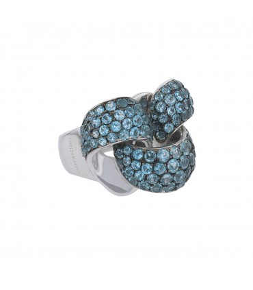 Bague en argent, à décor de motifs entrelacés sertis de pierres bleues. Signée.