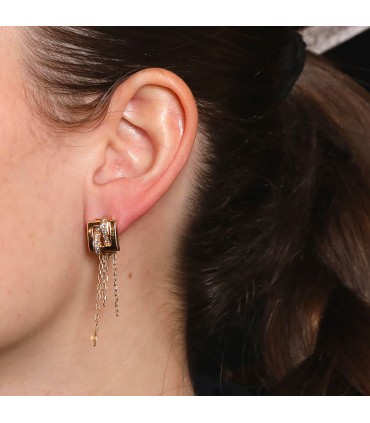Boucles d'oreilles en or jaune, à décor géométrique ajouré orné de diamants. Signées et numérotées.