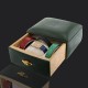 Montre bracelet de femme moyen modèle en or jaune, cadran doré stylisé avec index peints, lunette godronnée. Mouvement quartz. Bracelet en lézard bleu interchangeable avec fermoir invisible à glissière. Signée et numérotée. Accompagnée de 3 bracelets supplémentaires de couleur rouge, verte et noir.
