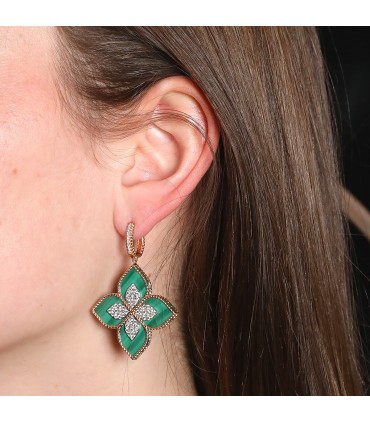 Roberto Coin Princess Flower malachite, diamonds and gold earrings