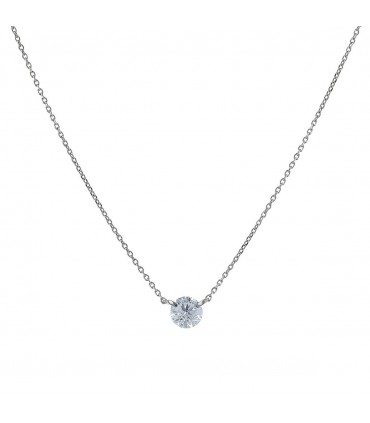 Collier en or blanc, maille forçat, retenant un diamant rond facetté d’environ 0,52 ct percé de part et d’autre, agrémenté d’un fermoir anneau permettant de régler la longueur de chaîne.