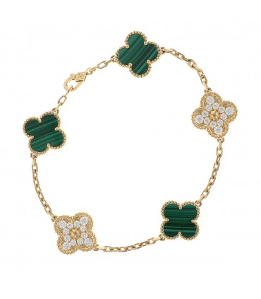 Van Cleef & Arpels Vintage Alhambra malachite, diamonds and gold bracelet