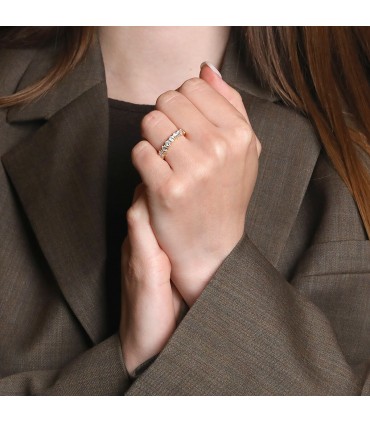 Alliance en or jaune, composé d’une ligne de diamants en serti griffe.
