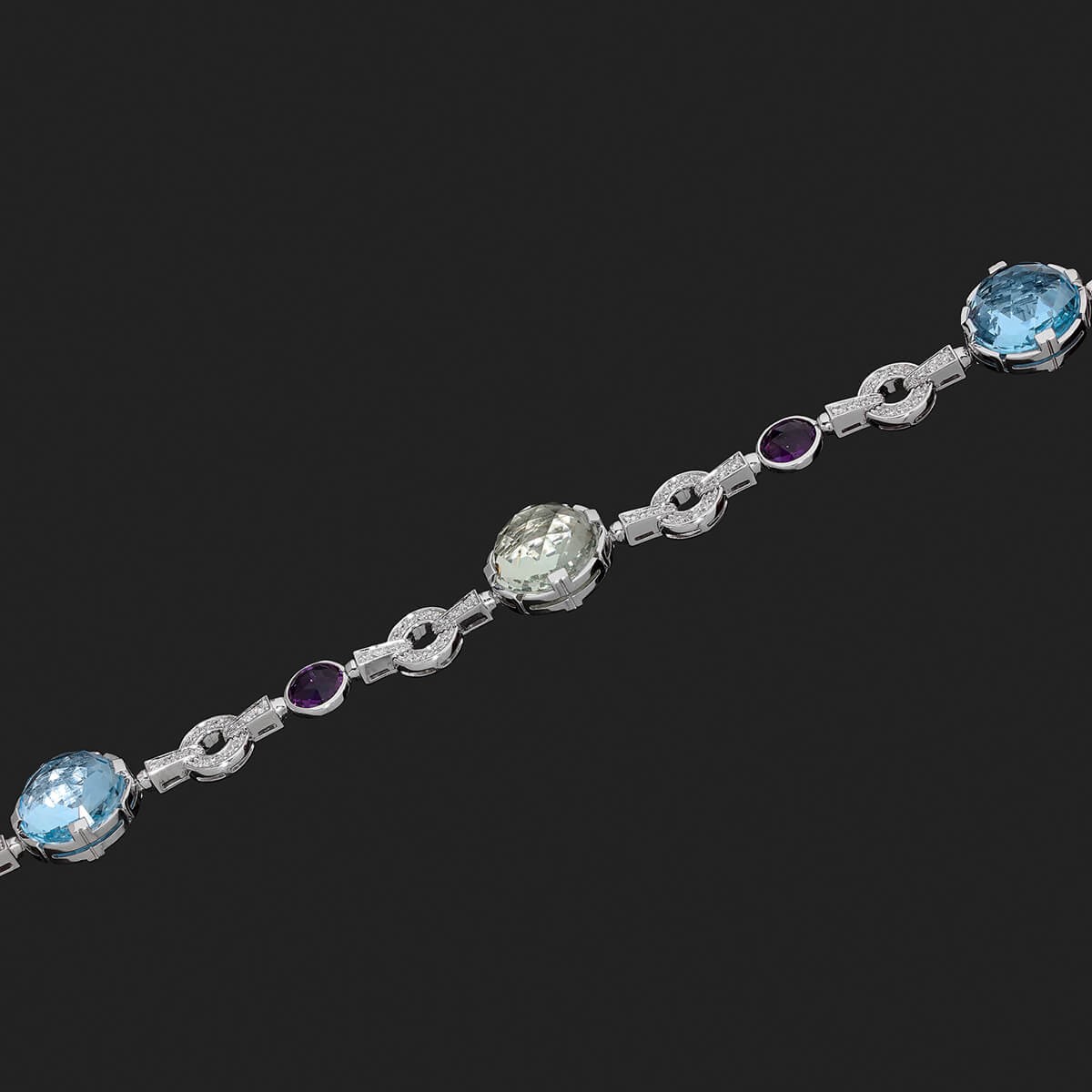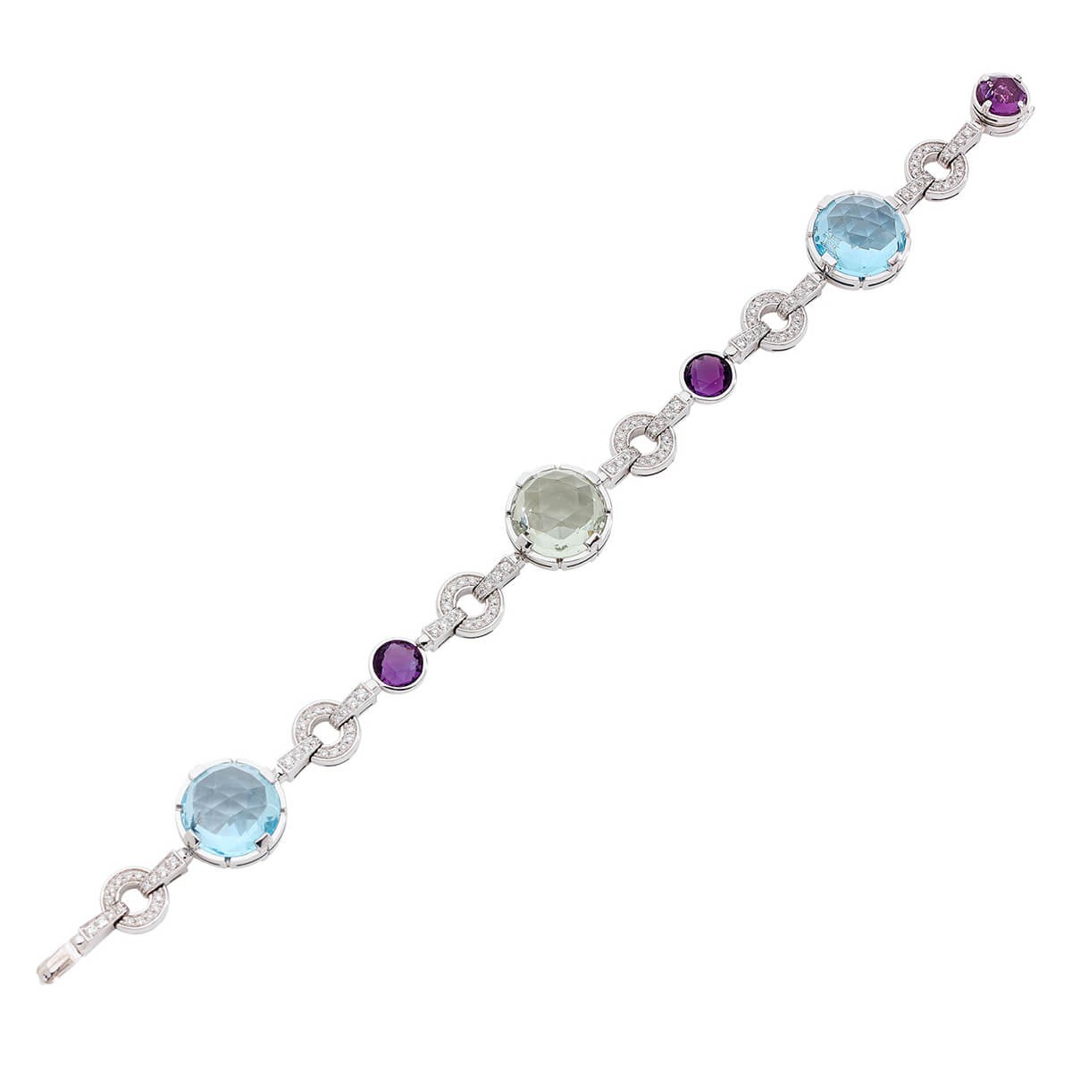 Diamonds, amethyst, aquamarine and gold bracelet. Sign Bulgari