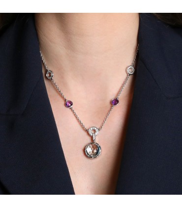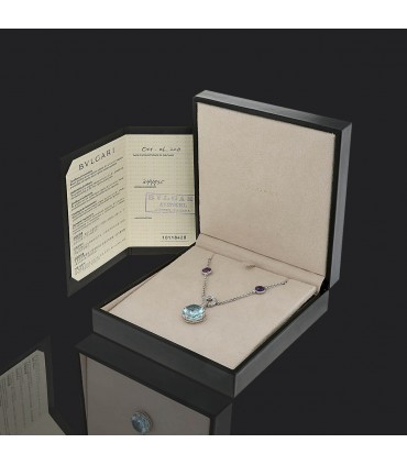Bulgari Parentesi Cocktail diamonds, amethysts, blue topaze and gold necklace