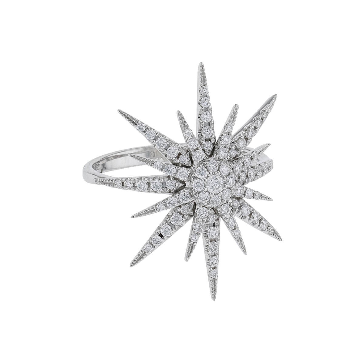 Bague en or blanc, ornée d’un soleil entièrement pavé de diamants. Signée.