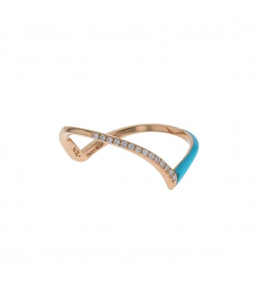 Bague en or rose, centrée d’un motif en pointe serti de diamants et d’émail turquoise. Signée.