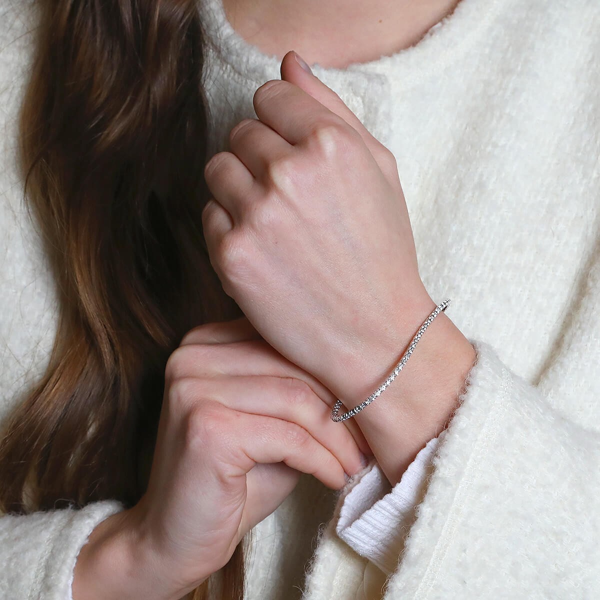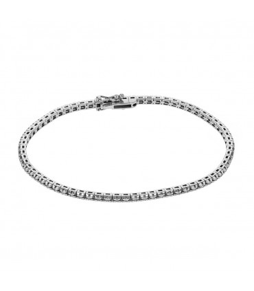 Bracelet en or blanc, serti d’une ligne de diamants pour un poids d’environ 0,80 carat, agrémenté d’un fermoir invisible à cliquet avec double huit de sécurité.