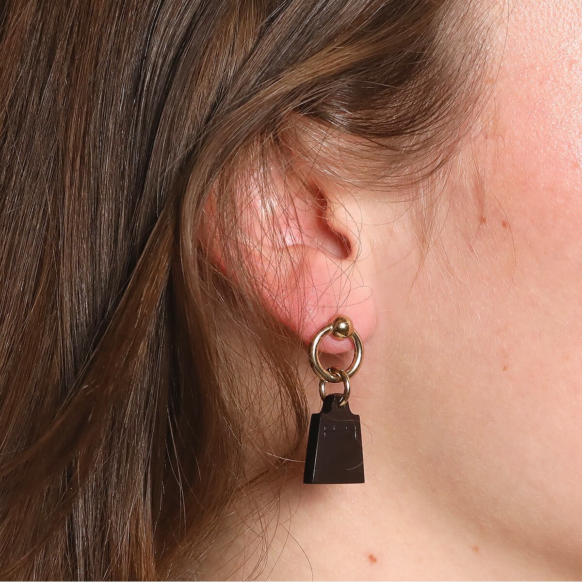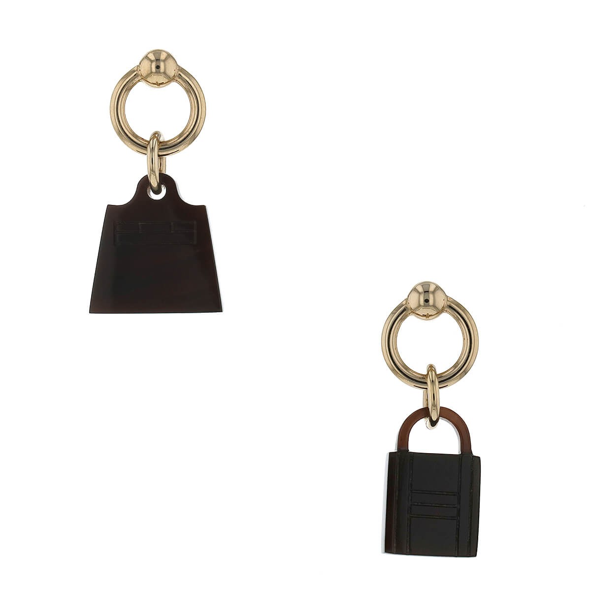 Hermès Amulette Maroquinier buffalo horn and 18k gold plated metal earrings