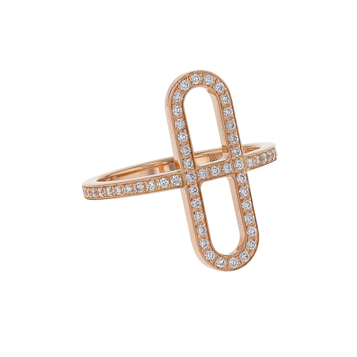 Bague en or rose, petit modèle, stylisant un maillon de chaîne d’ancre ajouré serti de diamants. Signée et numérotée.
