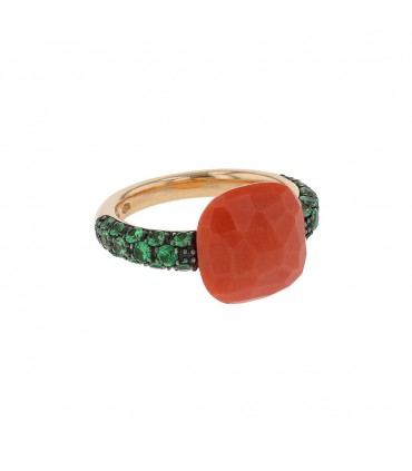Pomellato Capri coral, garnets and gold ring