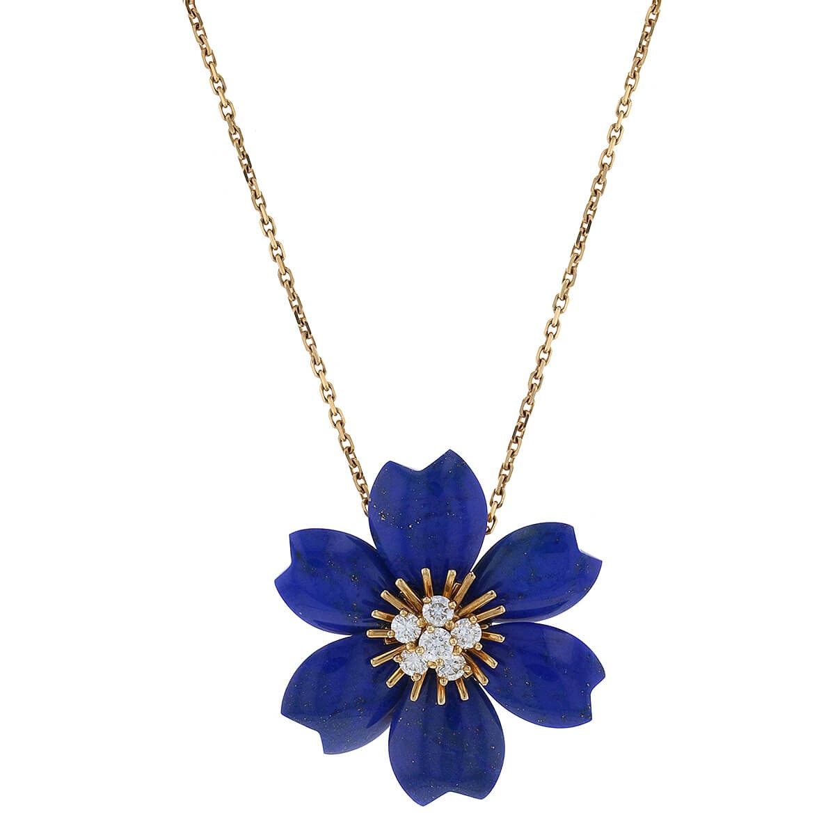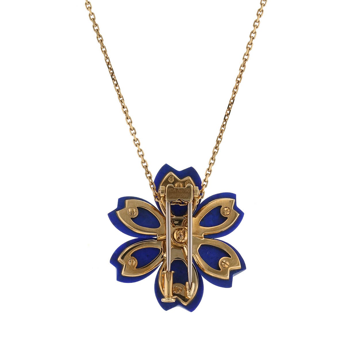 Van Cleef & Arpels Rose de Noël lapis lazuli, diamonds and 18k gold brooch necklace