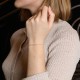 Bracelet en or jaune, serti d’une ligne de diamants jaunes pour un poids d’environ 0,93 ct et ponctué d’une pampille sertie d’un diamant blanc, agrémenté d’un fermoir à cliquet retenu par une chaîne en or. Signature suivie d’un diamant.