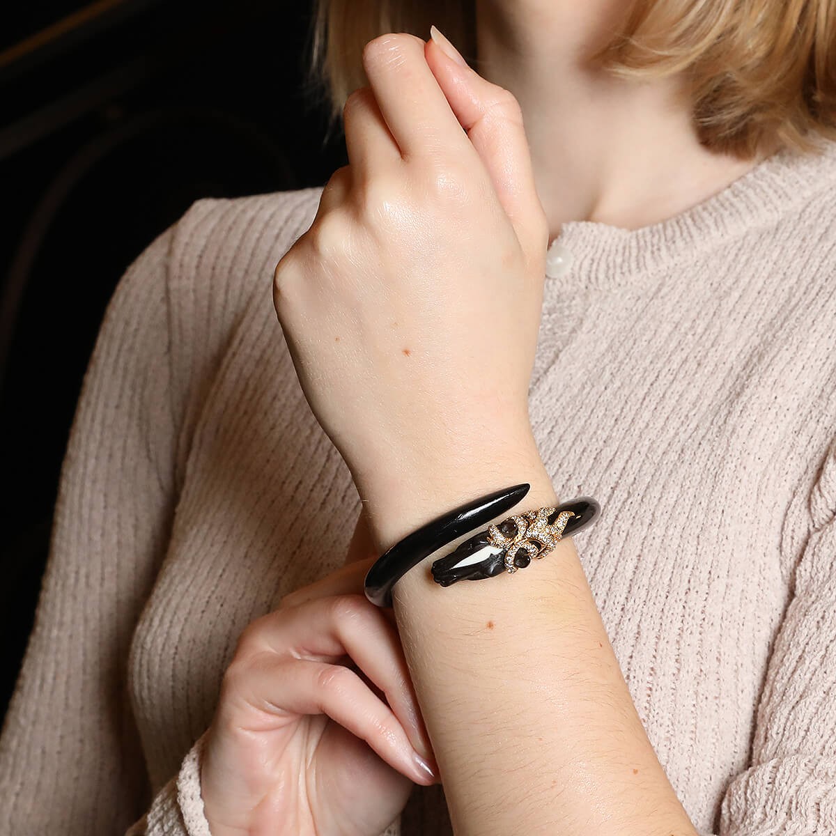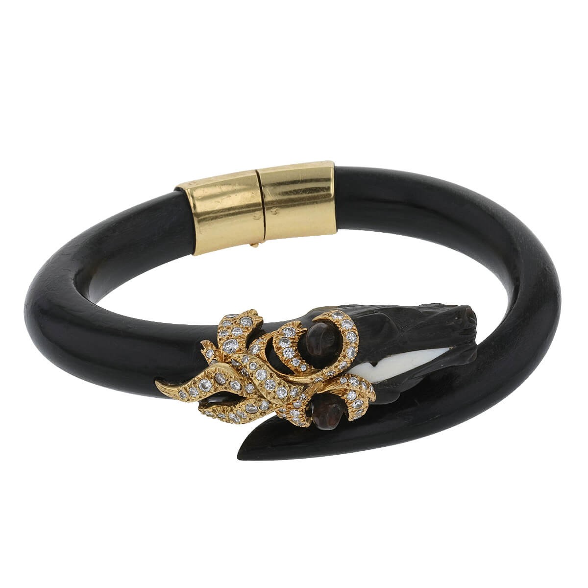 Gay Frères ebony wood, diamonds and 18k gold bracelet