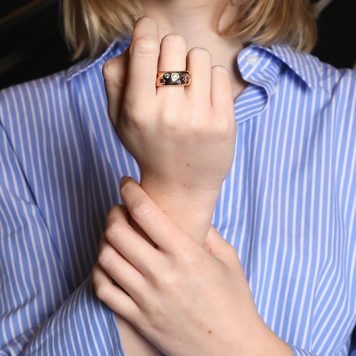 Pomellato Iconica tourmalines, spinels, zircons, tsavorites, sapphires, tanzanites, demantoid, amethyst and gold ring