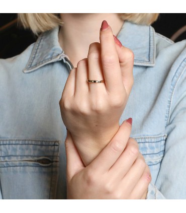 Alliance en or jaune, composée d’une suite de blocs ciselés centrée d’un diamant d’environ 0,01 ct. Signée et numérotée.