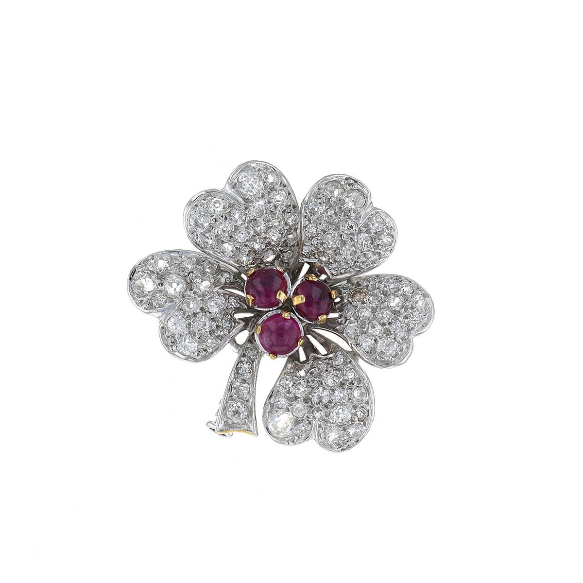 Diamonds, rubies and 18k gold brooch. Circa 1890.