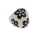 Bague en argent, centrées de motifs de fleurs en émail noir et sertis de pierres blanches sur un fond en émail crème.