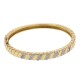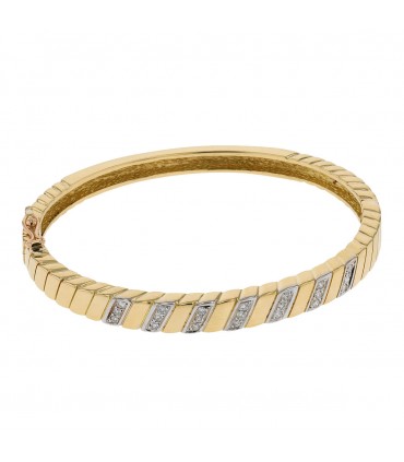 Bracelet ouvrant en or jaune, ponctué de motifs godronnés dont 7 sertis de diamants sur de l’or blanc, agrémenté d’un fermoir à cliquet avec huit de sécurité.