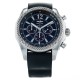 Montre chronographe en acier, cadran noir 3 compteurs avec chiffre arabe et index appliqués, affichage de la date par guichet à 4 heures 30. Mouvement automatique. Bracelet en caoutchouc noir avec boucle déployante. Signée et numérotée. Édition limitée.