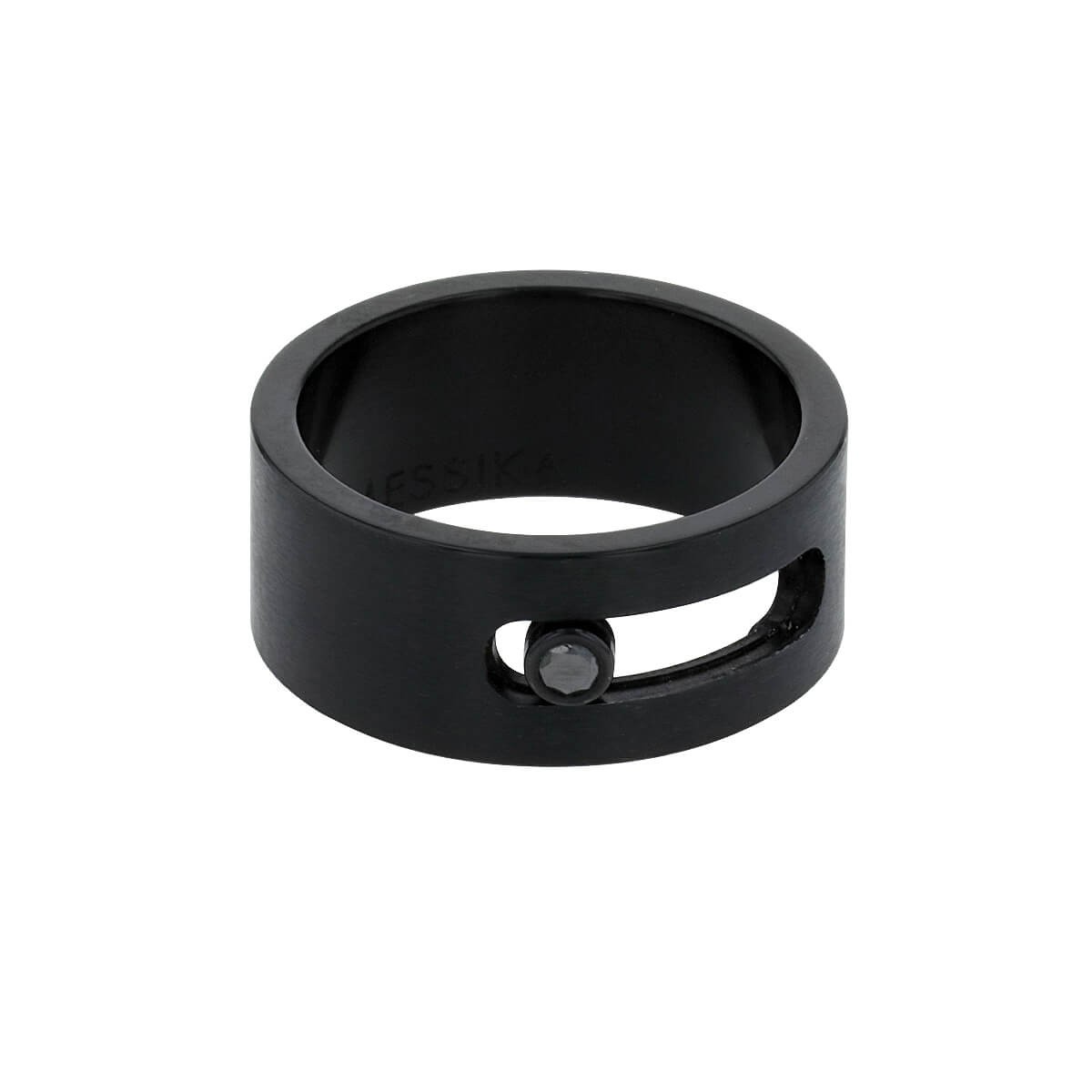 Bague en titane, grand modèle, à décor ajouré orné d’un diamant noir mobile. Signée et numérotée.