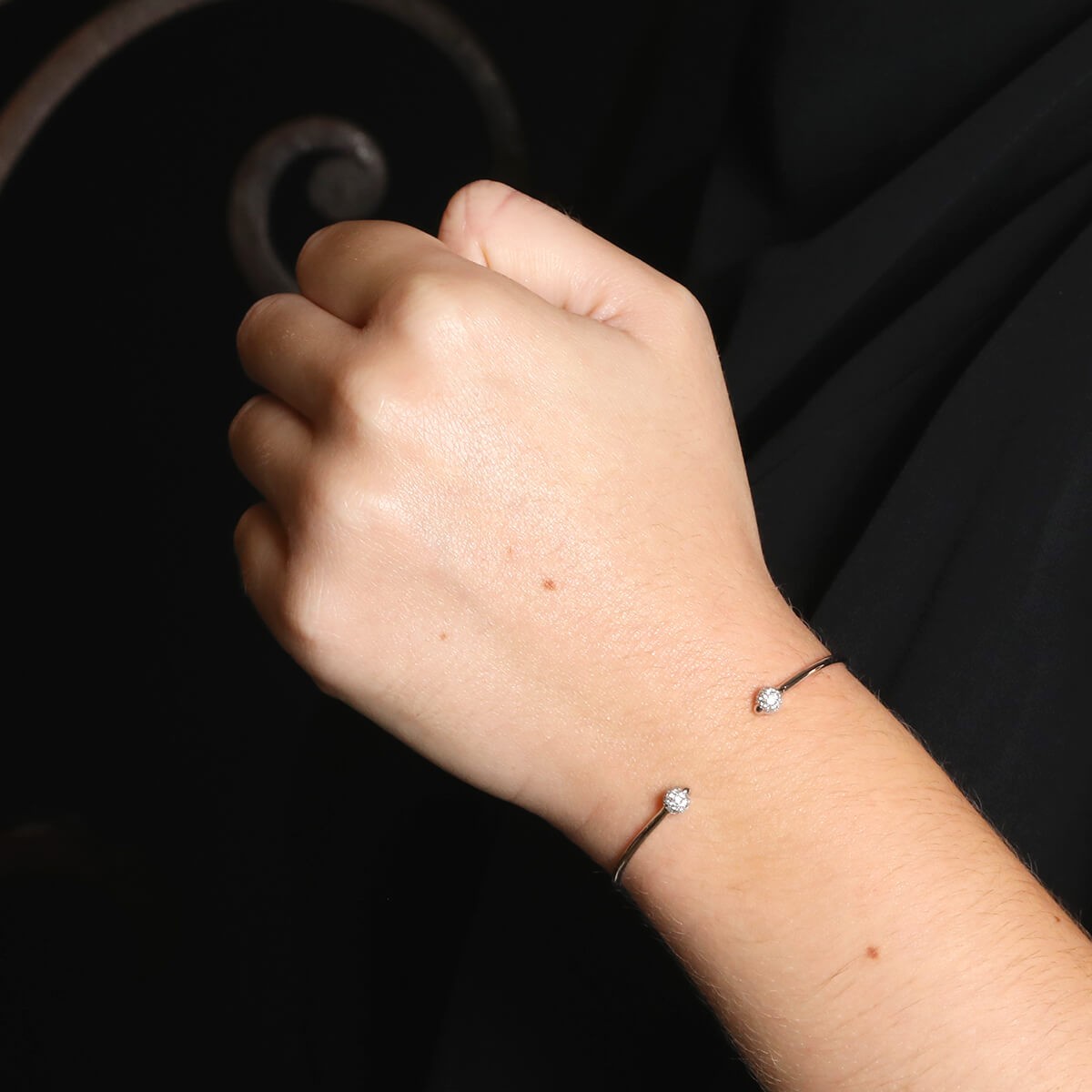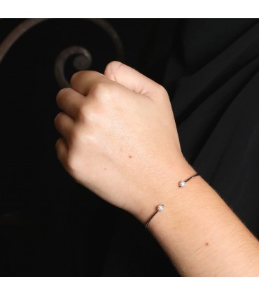Bracelet jonc ouvert en or blanc, ponctué de deux motifs perlés sertis de diamants. Signé et numéroté.