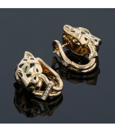 Cartier Panthère diamonds, garnets, lacquer and gold earrings.