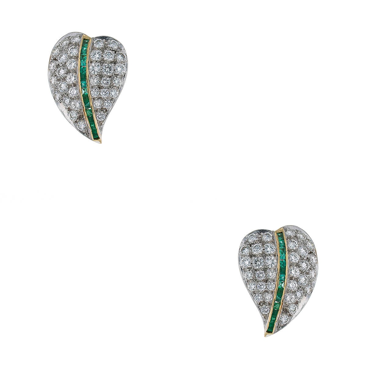 Diamonds, emeralds and gold earrings. Circa 1910.