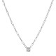 Collier en or blanc, maille allongée, centré d’un diamant en serti clos serti dans un cube ajouré. Signé.