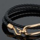 Bracelet en or rose et cuir tressé noir, centré de l’iconique fermoir Roulis. Signé et numéroté. Avec plastiques de protection.