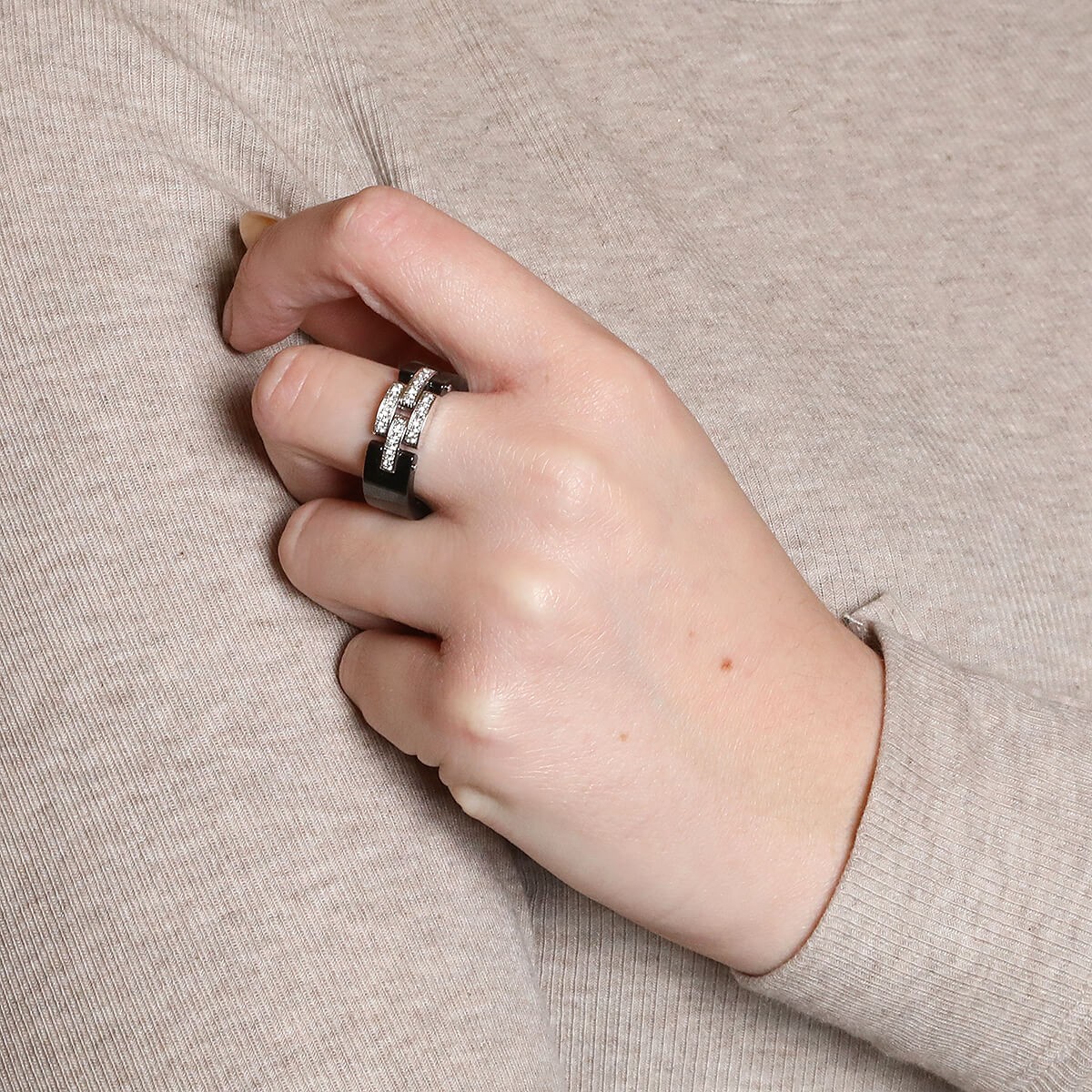 Cartier Maillon Panthère ceramic, diamonds and gold ring.