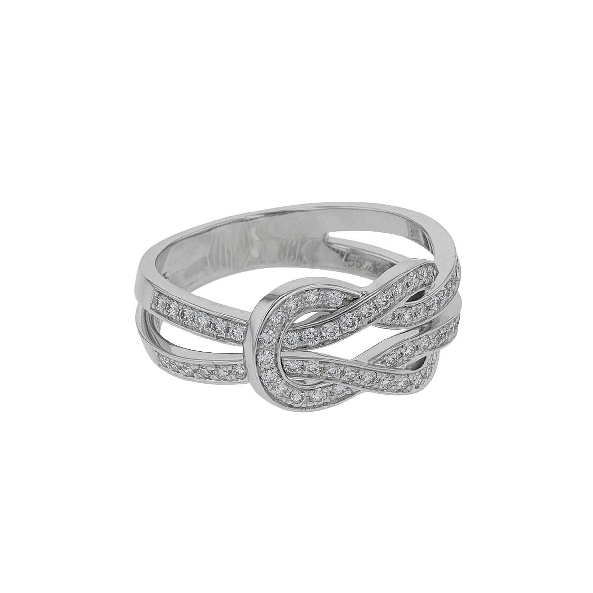Bague grand modèle en or blanc, stylisant un motif noeud d’hercule rehaussé d’un pavage de diamants. Signée et numérotée.
