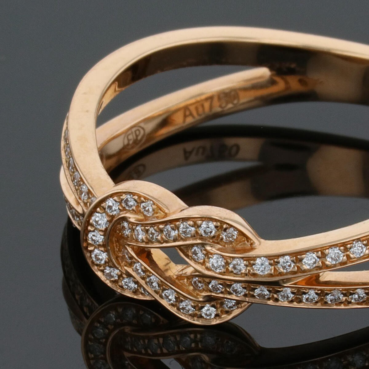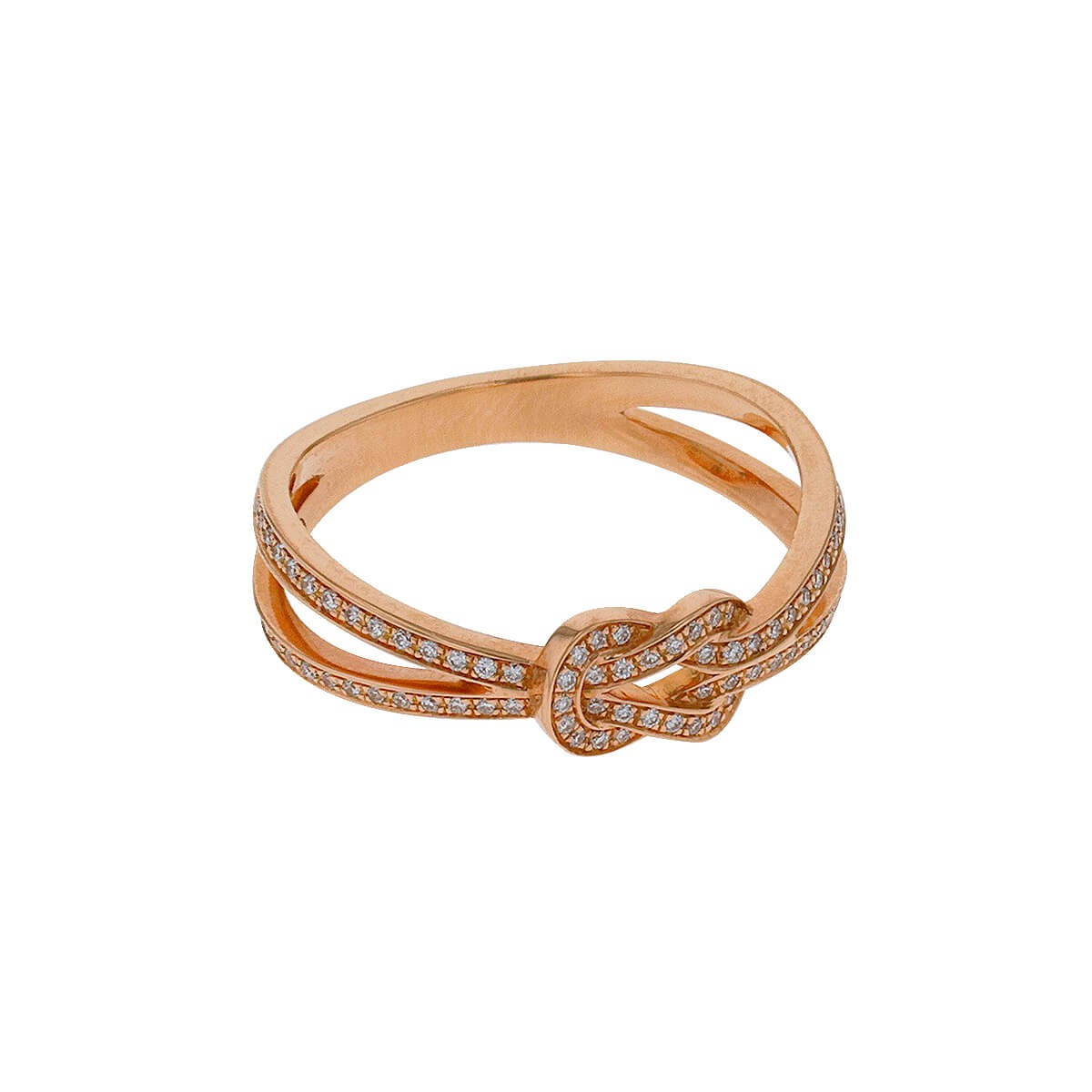 Bague petit modèle en or rose, stylisant un motif noeud d’hercule rehaussé d’un pavage de diamants. Signée et numérotée.