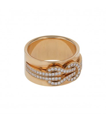 Bague en or rose, formée d’un large bandeau centré d’un motif noeud d’hercule rehaussé d’un pavage de diamants. Signée et numérotée.