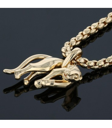 Collier en or jaune, maille stylisée retenant un panthère stylisant une panthère, agrémenté d’un fermoir à cliquet avec huit de sécurité. Signé et numéroté.