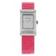 Montre bracelet de femme en acier, cadran argenté stylisé avec index diamants, lunette godronnée. Mouvement quartz. Bracelet interchangeable en lézard rose avec fermoir invisible à glissière. Signée et numérotée. Accompagnée de 4 bracelets supplémentaires de couleurs marron, noir, camel et vert.