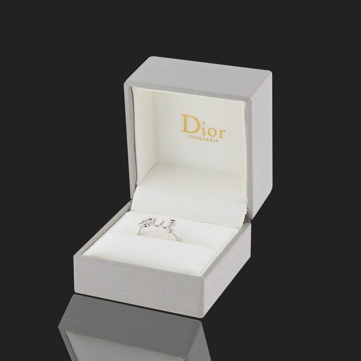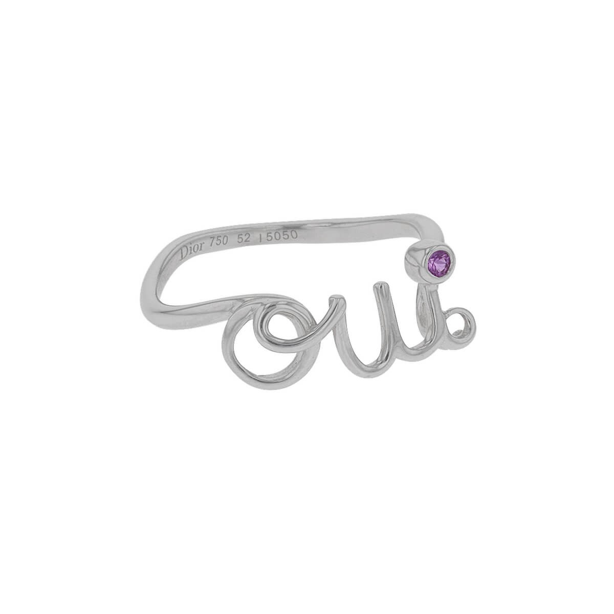 Bague en or blanc ajourée, stylisant les lettres ''oui'', ponctuée d'un saphir rose. Signée et numérotée.