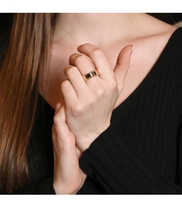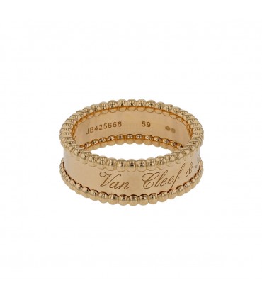 Bague en or jaune, gravée “Van Cleef & Arpels”, rehaussée de bordures perlées. Signée et numérotée.